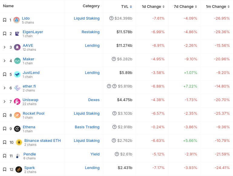 가장 큰 Total Value Locked(TVL) 이동자 + 기타