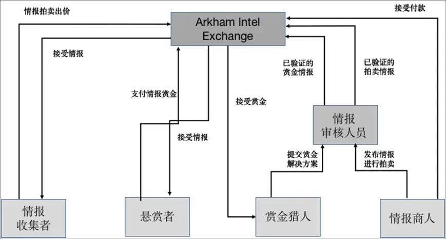 아캄 인텔 거래소의 핵심 시장은 암호화폐 지갑 주소 인텔리전스의 매매 시장입니다. 이 시장에서 현상금 추구자는 암호화폐 주소나 개체에 대한 정보를 얻기 위해 자금을 잠그는 방식으로 온체인 정보를 찾을 수 있습니다. 이러한 현상금은 지불 대가로 정보를 교환하는 블록체인 연구원이나 형사가 완료할 수 있습니다.