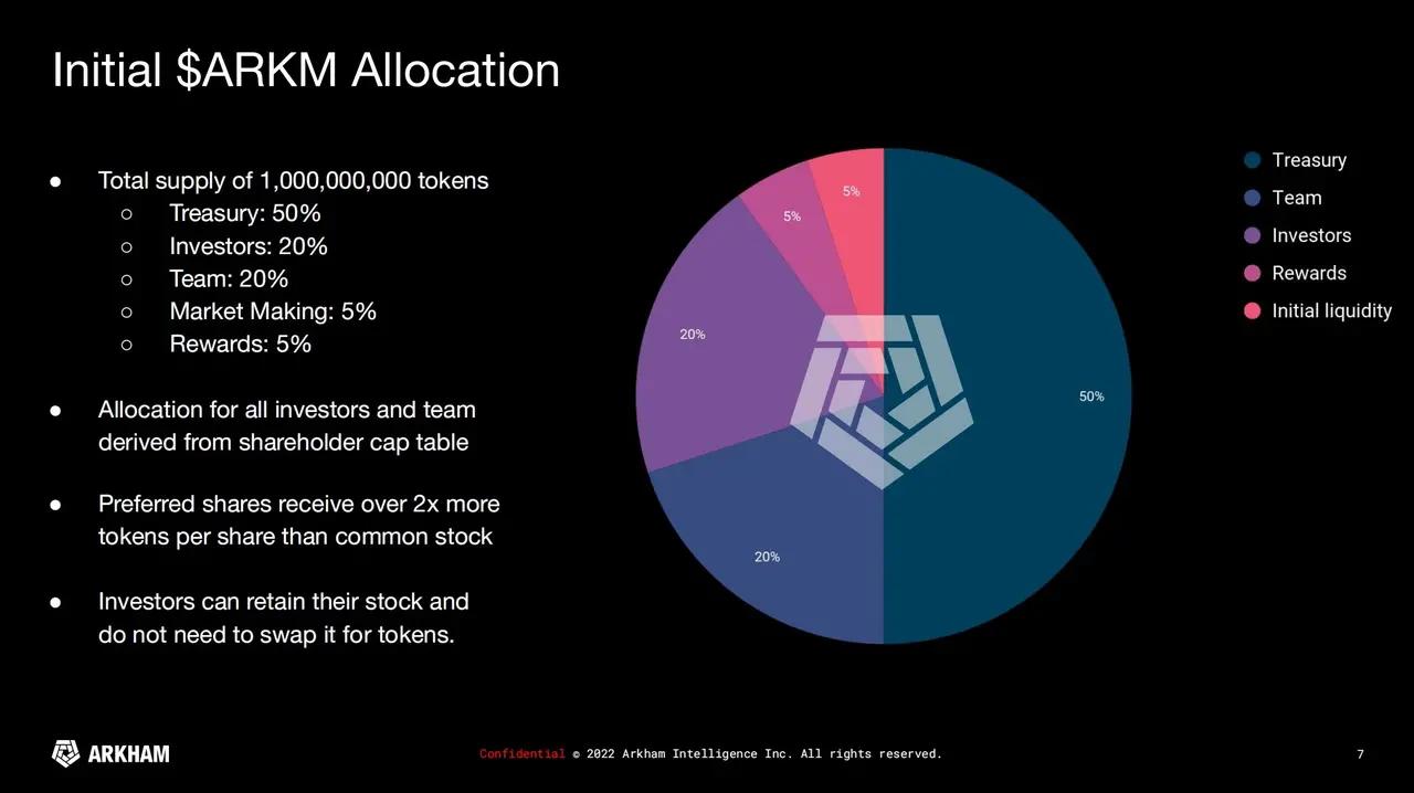 Arkham의 생태 토큰으로서 $ARKM 토큰의 총 공급량은 1,000,000,000 ARKM으로, 이는 초기 순환 공급량 토큰 총 공급량 의 15%입니다.