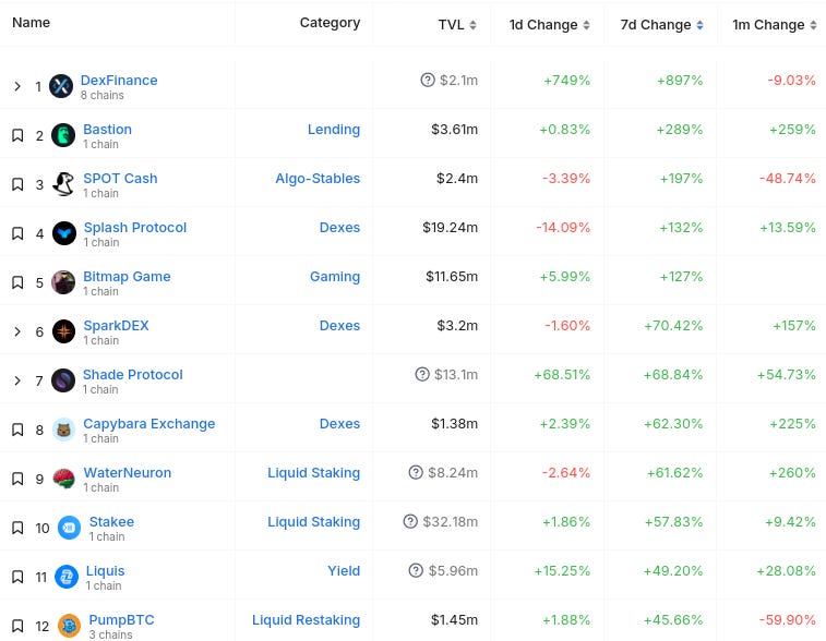 가장 큰 Total Value Locked(TVL) 이동자 + 기타