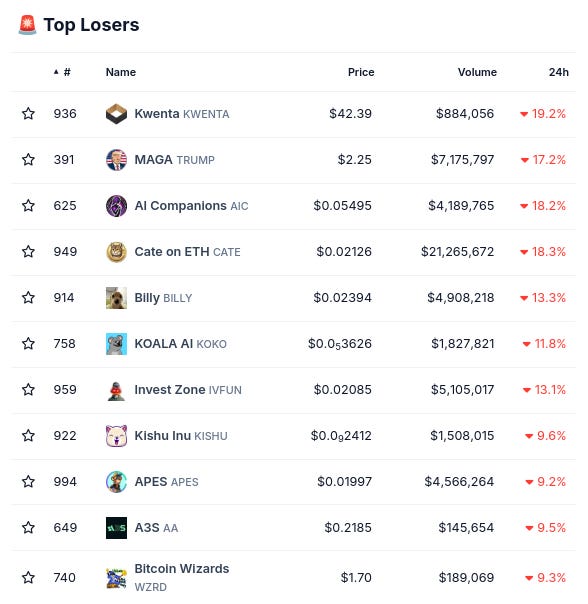 (24시간 변화로 @coingecko 상위 1000위에서)