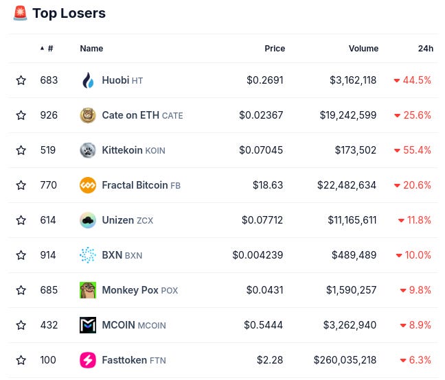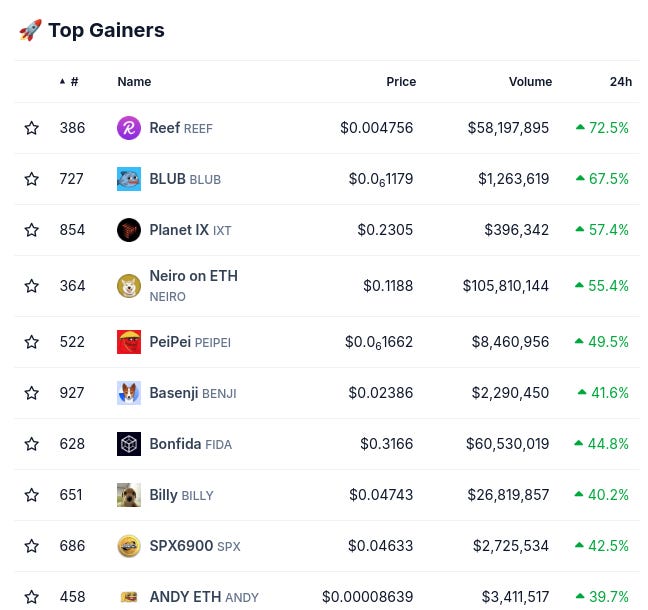 (24시간 변화로 @coingecko 상위 1000위에서)