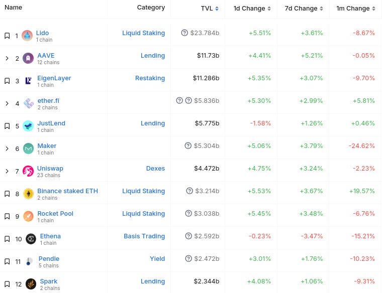 가장 큰 Total Value Locked(TVL) 이동자 + 기타