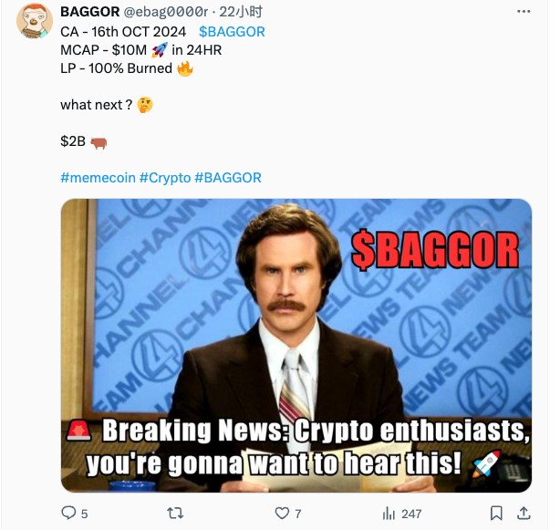 스크롤(Scroll) 체인의 관점에서 볼 때, 시장에 늦게 진입했기 때문에 이전 밈(meme) 열풍을 타지 못했습니다. 이러한 상황에서 스크롤(Scroll) 생태계는 자체적인 밈(meme) 문화를 구축하여 커뮤니티의 응집력과 결속력을 강화할 필요가 있습니다. $Baggor의 등장은 스크롤(Scroll) 생태계의 밈(meme) 문화적 공백을 메우는 역할을 하게 될 것입니다.