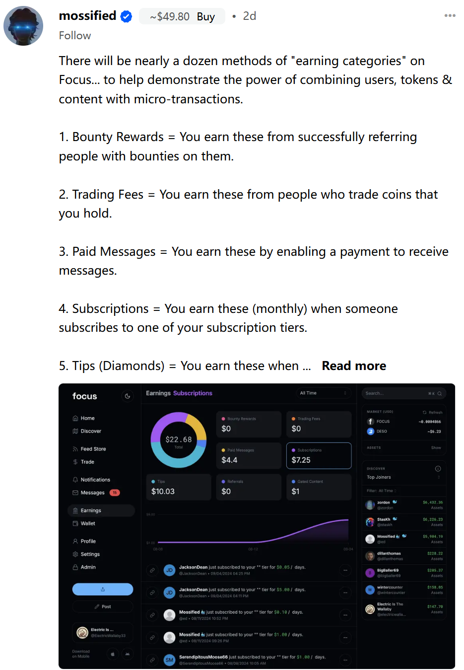 향후 Focus의 출시는 생태계 마케팅의 중요한 이정표가 될 것입니다. 핵심 팀이 (DESO 애플리케이션)에 공개한 바에 따르면, Focus 출시 시 약 10여 가지의 '수익 창출 방식'이 제공될 예정입니다.