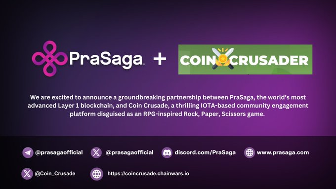 PraSaga,一家在第1层区块链创新领域的领导者,很荣幸能与@Coin_Crusade合作。@Coin_Crusade是一个令人兴奋的基于的社区参与平台,它伪装成一个受启发的剪刀石头布游戏。我们携手共进,