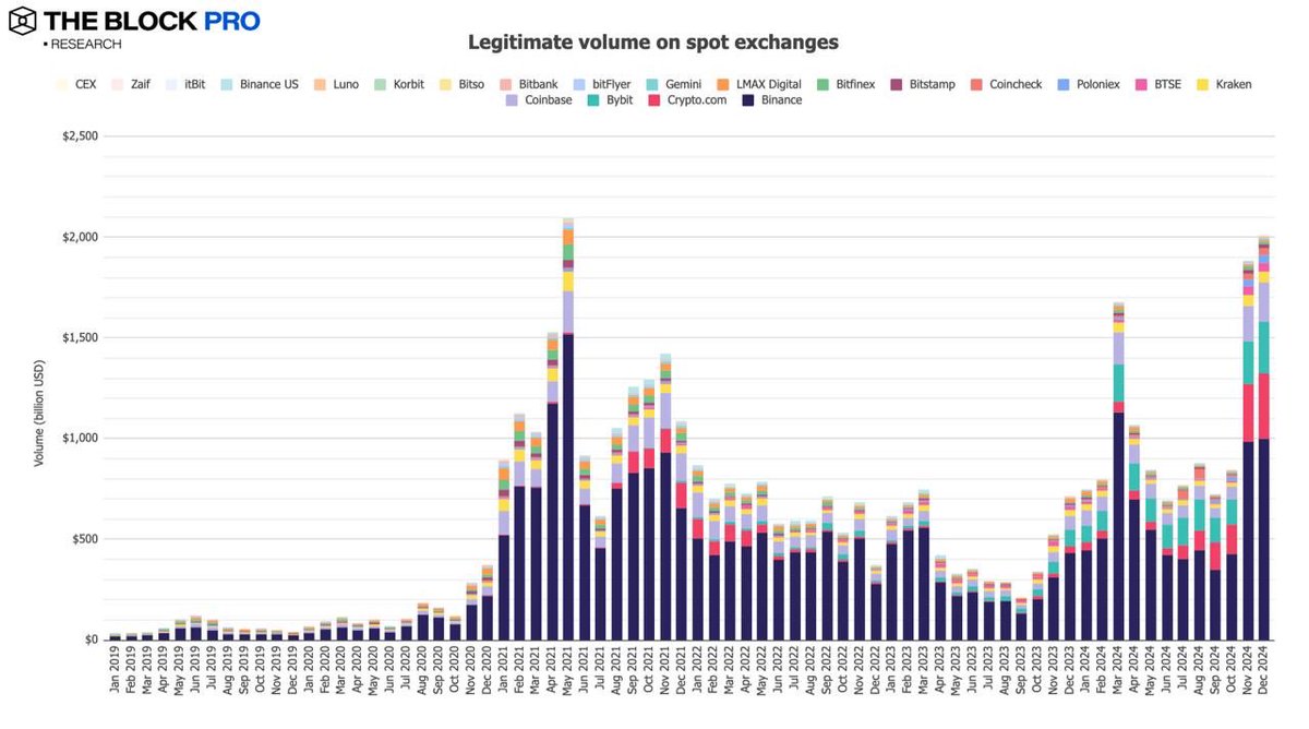 6/12 합법적 중앙화 거래소(CEX) 현물 거래량 6.8% 증가하여 2.01조 달러에 도달했습니다.