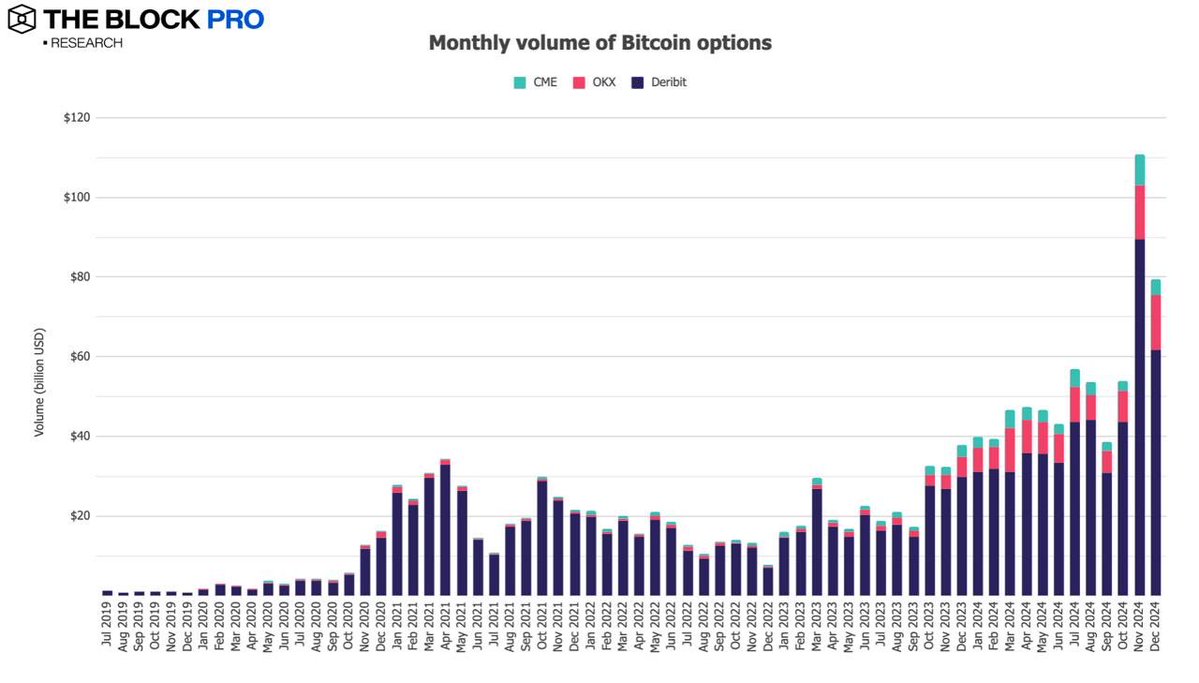 11/12 옵션: 미결제 약정: 비트코인(BTC): -36%, 이더리움(ETH): -30.2%. 비트코인(BTC) 월별 옵션 거래량 28.4% 감소하여 $79.5B(이더리움(ETH): +5.6% 감소하여 $23.1B)로 감소: