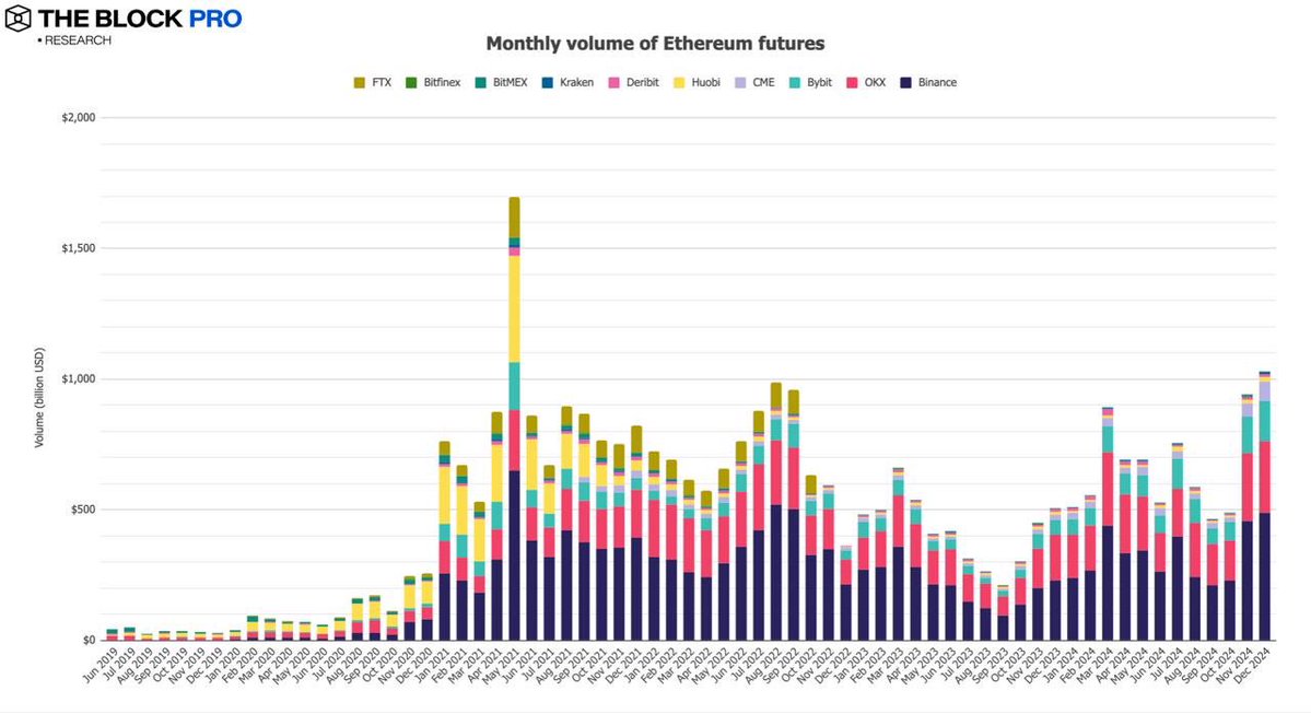 10/12 이더리움(ETH) 선물 월간 거래량 9.6% 증가하여 1.03조 달러에 도달했습니다.