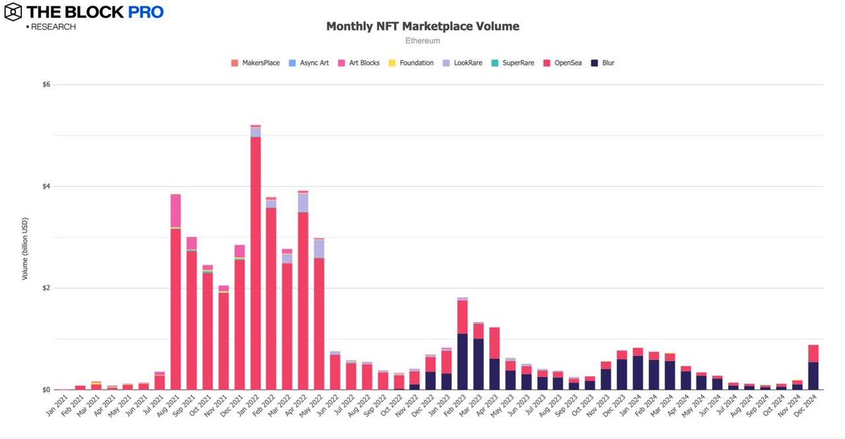 5/12 Ethereum의 월별 NFT 마켓플레이스 거래량 350.7% 증가하여 8억 8,480만 달러에 달했습니다. 이는 주로 Pudgy Penguins 토큰 출시와 OpenSea의 토큰 티저 덕분입니다.