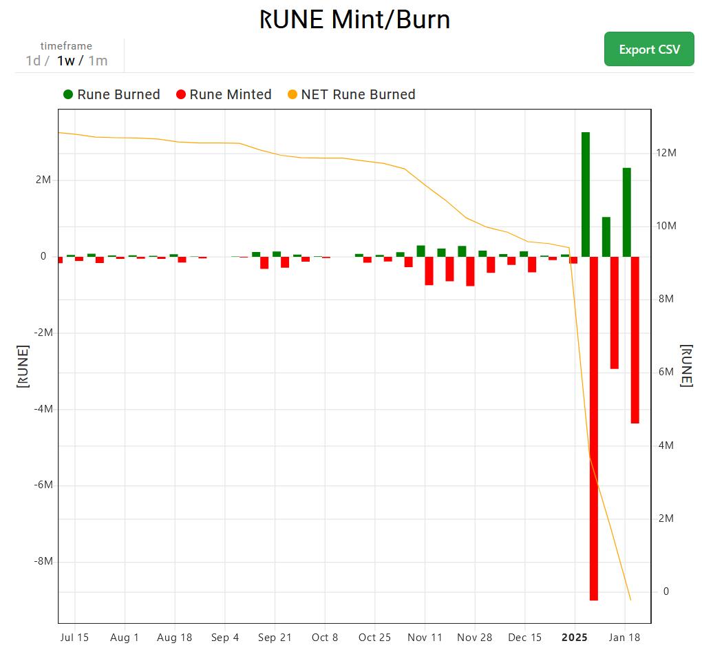 아래 차트는 루네 소각 속도를 크게 초과하는 루네 발행 속도를 보여줍니다: