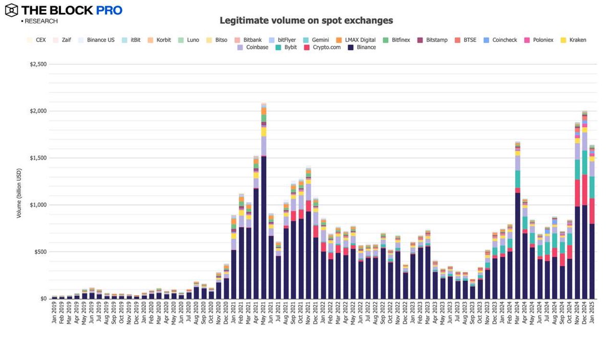 6/12 합법적 중앙화 거래소(CEX) 현물 거래량 18.2% 감소하여 1.65조 달러에 달했습니다.