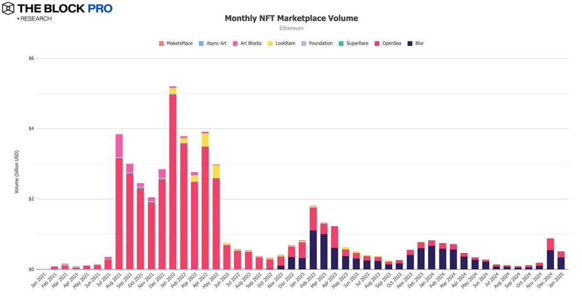 5/12 Ethereum의 월별 NFT 마켓플레이스 거래량 41.3% 감소하여 5억 1,920만 달러로 감소했습니다.
