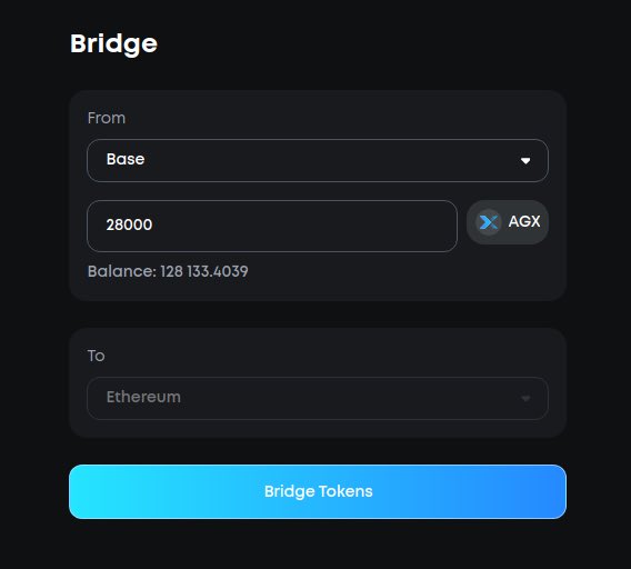 🔗 공식 싱귤래리티넷(AGIX) 이더리움 요청 사항(ERC) 20 베이스 브릿지 👇 app.agint.xyz/bridge $AGX 토큰을 베이스 네트워크로 쉽게 전송하고 구축을 시작할 수 있습니다! 🔹 낮은 수수료 🔹 빠른 브릿징 프로세스 🔹 AI 에이전트 배포에 필수적