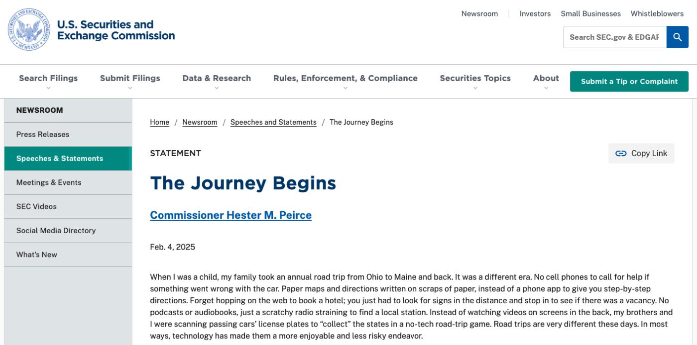 https://www.sec.gov/newsroom/speeches-statements/peirce-journey-begins-020425