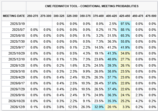 根据芝商所 FedWatch 指数,交易员预期联准会将延后到9月才会再度降息(前一日为7月),且2025年的降息幅度仅有一码,并可能在2026年也长期维持在高利率水平。
