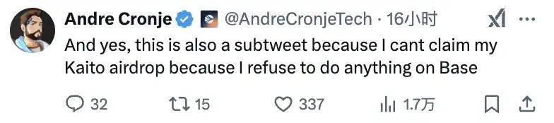 @yuyue_chris는 "상위와 중하위 KOL의 평판이 극명하게 갈렸다: 상위 KOL은 대체로 만족스럽지 않고, 중하위 KOL은 크립토닷컴 코인(CRO)에 매우 감사해 한다"고 밝혔습니다. @mdzzi도 유사한 의견을 제시했는데, "중간 규모 KOL의 승리, 상위 KOL의 영향력이 수탈당했다"며 상위 기여자와 신규 사용자 간 보상의 불균형을 지적했습니다.