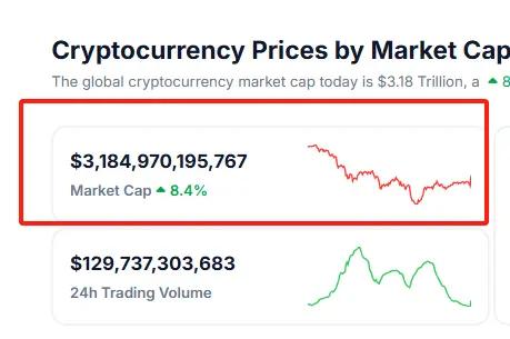 암호화폐 전체 시총 3조 달러로 회복되었으며, 지난 하루 동안 8.4% 상승했습니다.ChainCatcher03-03이 기사는 기계로 번역되었습니다원문 표시체인캐처(ChainCatcher) 메시지에 따르면 Coingecko 데이터에 따르면 암호화폐 총 시총이 3조 달러를 다시 돌파했으며, 현재 3.18조 달러를 기록하며 지난 24시간 동안 8.4% 상승했습니다.출처면책조항: 상기 내용은 작자의 개인적인 의견입니다. 따라서 이는 Followin의 입장과 무관하며 Followin과 관련된 어떠한 투자 제안도 구성하지 않습니다.라이크즐겨찾기에 추가 코멘트공유관련 콘텐츠CoinDeskSchwab은 2026년 상반기에 비트코인과 이더리움 현물 거래를 시작할 계획입니다.BTC0.15%BTC News리플(XRP) 가격이 여기서 더 떨어질까요? 주목해야 할 주요 가격대는?XRP0.05%BeInCrypto바이낸스에서 리플(XRP) 유동성이 급감했습니다. 가격은 어떻게 반응할까요?RLUSD0%