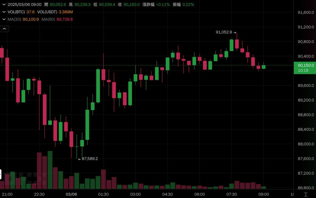 或受此消息激励,比特币(Bit)今晨突破 9 万大关最高触及 91,052 美元。