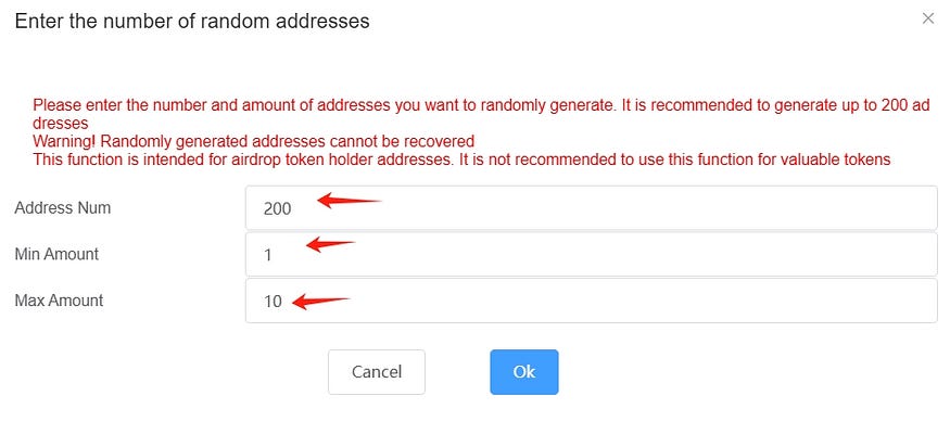 - 시스템이 귀하의 기준을 충족하는 주소와 금액을 생성합니다.