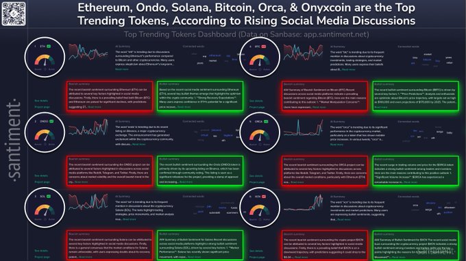 🗣️ 주말이 시작되면서, 소셜 미디어에서 평소보다 높은 관심을 받고 있는 상위 트렌딩 토큰들은 다음과 같습니다: 🪙 이더리움(ETH): 이더리움의 성과를 비트코인 및 다른 암호화폐들과 비교하며 논의가 급증하고 있습니다. 많은 사용자들이 표현하기를