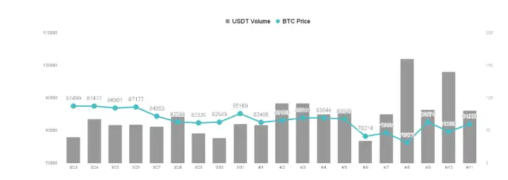 가격 성과에 관해서 말하자면, 미국 주식 시장, 금, 암호화폐 등 모든 시장은 기본 원칙에서 벗어나 있으며, 트럼프의 관세 전쟁 정책 대본과 그에 따른 다른 국가의 관세 보복 조치에 따라 움직입니다. 비트코인은 이러한 혼란스러운 시장 변동 속에서도 비교적 안정적으로 유지되고 있으며, 가격은 76,000달러에서 82,000달러 사이에서 변동합니다. 비교적 안정적인 자산이지만, 현재로선 비교적 저렴한 가격대의 조짐은 보이지 않습니다. 이는 투자자들이 여전히 비트코인을 적극적으로 투자하고 있음을 보여줍니다.