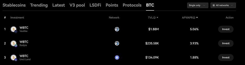 OKX의 온체인 DeFi는 30개 이상의 퍼블릭 체인과 거의 200개의 플랫폼에 통합되어 있습니다. 플랫폼은 추가 수수료를 부과하지 않습니다. DeFi 프로젝트에는 ETH 리스테이킹, 스테이블코인, 단일 통화 스테이킹, 이중 통화 스테이킹, 그리고 최신 비트코인 스테이킹 등이 포함됩니다.