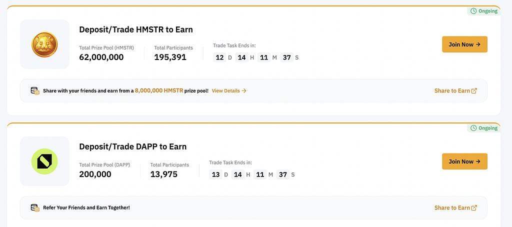 - 듀얼 투자 : 사용자가 하나의 자산을 예치하고 시장 가격에 따라 다른 자산에 대한 수익을 받을 수 있는 단기 투자 도구로, 가격 변동에 대한 헤지 또는 투자에 적합합니다.