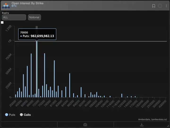 동시에 공매도 포지션도 여전히 존재하며, 현재 7만 달러 풋옵션의 미결제 약정 금액은 9.82억 달러로 두 번째로 인기 있는 선택지이며, 공매도 세력이 완전히 철수하지 않고 여전히 일정 수준의 방어선을 유지하고 있음을 보여줍니다.