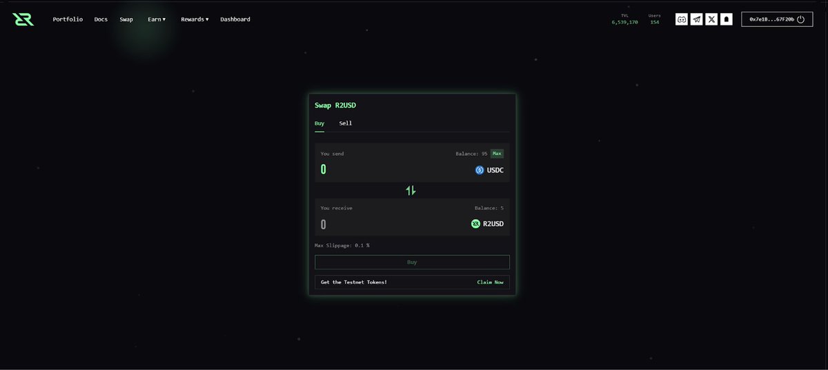 민트 & 테스트넷 USDC를 1:1 비율로 R2USD로 교환하세요