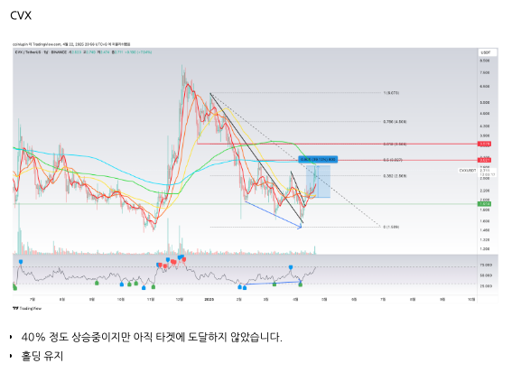 $CVX 어제 상승중에도 타겟 미도달로 홀딩 후 추가 상승이 발생하며 타겟 $3 부근에 도달하였습니다. 43% 상승으로