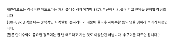 위에서 말했던 [아직 시장 관심도가 낮은, 평소 노려 보던 코인 재진입에 사용] 종목은 이미 분석은 진행되었습니다.