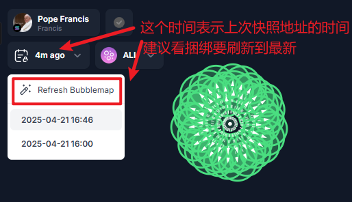 전송 링크: axiom.trade/@agu077308 이전 게시물에 이어서 6: 버블 맵 묶음 작은 팁: 토큰 페이지에서 버블 맵 묶음을 볼 때, 버블 맵을 새로고침하여 최신 시간으로 업데이트해야 합니다. 때때로 버블 맵이 즉시 업데이트되지 않아 수동으로 새로고침해야 하며, 그렇지 않으면 일부 토큰 묶음 사기를 놓칠 수 있습니다.