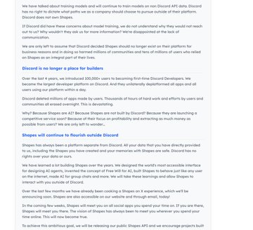 Discord just shutdown Shapes. We had 30 million users. We introduced 100k+ developers to the discord developer platform.