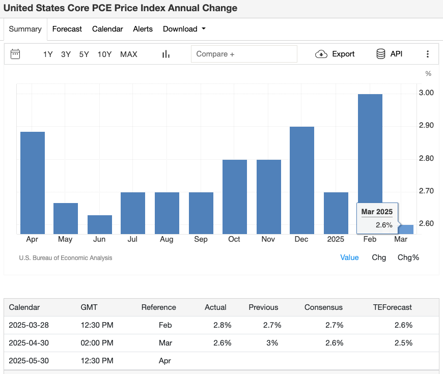 PCE 핵심(연준이 선호하는 인플레이션 지표)은 2% 목표에 가까운 약 2.6%로 떨어졌습니다. 1분기 미국 GDP 성장률이 다시 마이너스를 기록하면서 연준이 금리를 인상해야 한다는 압력이 커지고 있다.