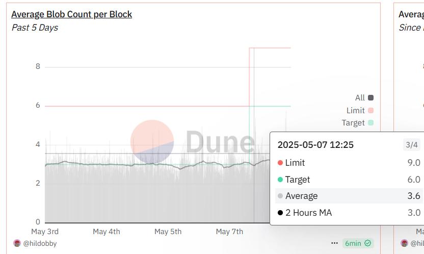온체인 데이터 성과를 보면, Pectra 업그레이드 이후 Blob 제출 수준이 약간 변동했으며, 업그레이드 확정 직후 Blob 제출이 일시적으로 3.6개까지 상승했지만, 전체적인 수준은 여전히 설계 수준의 절반에 미치지 못합니다. 그러나 비탈릭은 강연에서 L2의 빠른 발전에도 불구하고 검열 저항 및 L2 간 자산 이전을 위해 L1의 확장성 향상이 여전히 중요하다고 말했습니다. 미래에는 L2가 대규모 거래 처리를 담당하면서 L1의 Blob은 필연적으로 부담을 받게 될 것이며, 현재 시장 상황에서 L2의 지속적인 발전은 L1에 잠재적인 피드백을 제공하고 있습니다.