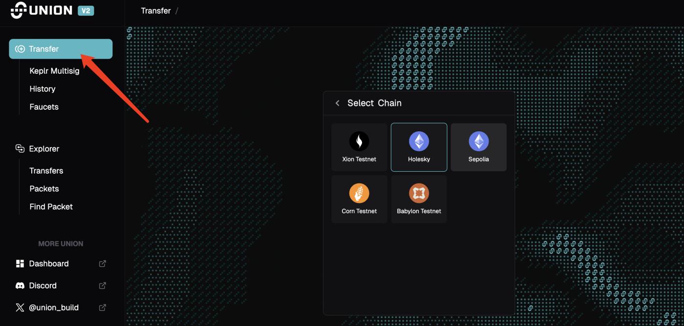 3단계. 메타마스크와 케플러(Keplr) 지갑 연결, 지원되는 다른 네트워크 간 직접 크로스체인 작업 수행(링크: https://app.union.build/transfer).