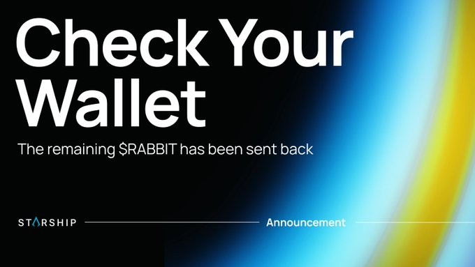 남은(초과 구독된) $RABBIT은 2025년 5월 9일 오전 8:00(UTC)부터 귀하의 지갑에 직접 제공됩니다. 할당된 토큰과 $RABBIT 모두 판매 중 사용된 와 연결된 지갑으로 전송됩니다.