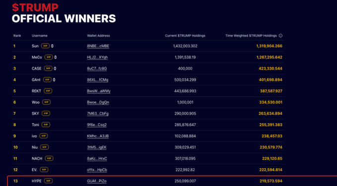 암호화폐에서 베이시스 트레이딩을 지루하다고 생각하는 사람들도 있지만, 가끔은 대통령과 저녁 식사에 초대되는 것과 같은 랜덤한 혜택을 받을 수 있습니다. 하이퍼리듬은 리더보드에서 상위 13위 홀더로서 <$TRUMP> 저녁 식사에 참석할 예정이며, 만나고 싶으시다면 개인 메시지(DM)를 열어두었습니다.