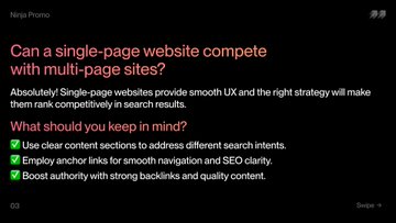 🔍 성공적인 SEO를 위해 싱글 페이지 웹사이트를 최적화하세요!🚀 👉 싱글 페이지 웹사이트 #SEO 전략에 대한 궁금증을 해결하려면 옆으로 넘기세요! 📖 더 많은 인사이트를 원하시나요? 전체 기사를 읽어보세요: ninjapromo.io/seo-for-single-p...… #디지털마케팅 #검색최적화