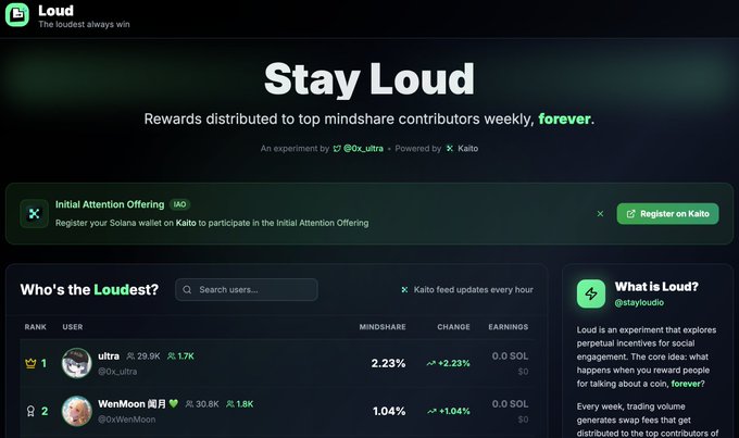 <@stayloudio>: <@KaitoAI> 생태계의 혁신적인 실험과 IAO 열풍 프로젝트 배경 및 생태계 포지셔닝: <@stayloudio>는 <@0x_ultra>가 시작한, <@KaitoAI> 생태계에 기반한 블록체인 프로젝트로, 토큰화 메커니즘을 통해 콘텐츠 크리에이터와 커뮤니티 참여자를 장려하는 것을 목표로 합니다. - 루디오는 의 데이터 분석 능력을 활용하여 소셜 미디어에서의 사용자 영향력을 평가하고, $LOUD 토큰으로 보상을 분배합니다. - 이 메커니즘은 소셜 행동(좋아요, 리트윗, 댓글 등)을 디지털 자산으로 정량화하여 주목 경제 기반 생태계를 구축하려 시도합니다. 메커니즘 설계의 논란: 루디오의 보상 메커니즘은 중국어 커뮤니티에서 광범위한 논의를 불러일으켰으며, 특히 다음 두 가지 측면에 집중되었습니다: - 보상 분배의 한계: 현재 상위 25개 "야퍼스"(고영향력 사용자)만이 플랫폼 수수료를 공유할 수 있습니다. 이 설계는 너무 집중되어 있다는 비판을 받으며, 일반 사용자의 참여 의욕을 제한할 수 있습니다. - 상위 및 중간 사용자의 균형: 상위 야퍼스는 일반적으로 콘텐츠 게시 빈도가 낮아, 보상이 최고 KOL을 최대한 장려하지 못할 수 있으며, 동시에 중간 사용자를 소외시켜 플랫폼의 활성화와 주목 흐름에 영향을 줄 수 있습니다. 초기 주목 제공(IAO) 하이라이트: - <홀로(Holo)>세계 AI 플랫폼을 통해 IAO 진행 - 융자 목표: 약 70,000 달러(약 400 솔라나(SOL)) 모집, $LOUD 총 공급량의 45% 차지 - 시간 일정: 2025년 5월 31일 오후 10시(베이징 시간)에 시작, 두 단계로 진행 - 시총: 초기 완전 희석 가치(FDV)는 약 888.89 솔라나(SOL)(약 155,555 달러, 1 솔라나(SOL) = 175 달러 가정) 더 넓은 맥락과 의미: 루디오의 출시는 주목 경제와 블록체인 기술의 결합 추세를 반영합니다. 디지털 시대에 사용자의 주목은 희소한 자원이 되었으며, 플랫폼은 토큰화 인센티브를 통해 사용자 참여를 유도하고 가치 분배 방식을 재정의하려 시도합니다. 요약 및 전망: 루디오는 생태계의 일부로, $LOUD 토큰과 IAO를 통해 주목 경제의 새로운 가능성을 탐색합니다. 메커니즘 설계에 일부 논란이 있지만, 낮은 평가와 강력한 생태계 배서로 주목할 만한 투자 기회가 될 수 있습니다.