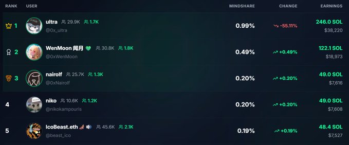 상위 5개 루디오 마인드쉐어 홀더들은 이미 각각 거의 1만 달러에 대한 자격이 있으며, 수수료 발생 시간은 30분입니다.