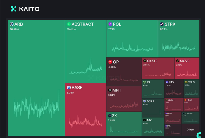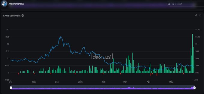 아비트럼(Arbitrum)의 감성이 카이토 리더보드 출시 후 연간 최고치를 기록했습니다.