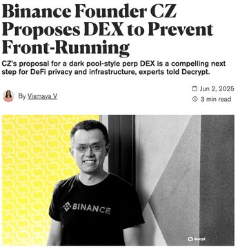 -창펑자오(CZ) 바이낸스, 이제 '다크풀' 탈중앙화 거래소(DEX) 출시할 때라고 말해