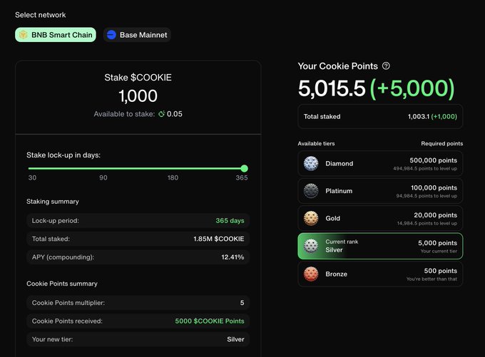 오늘 $COOKIE을 365일 동안 스테이킹했습니다!