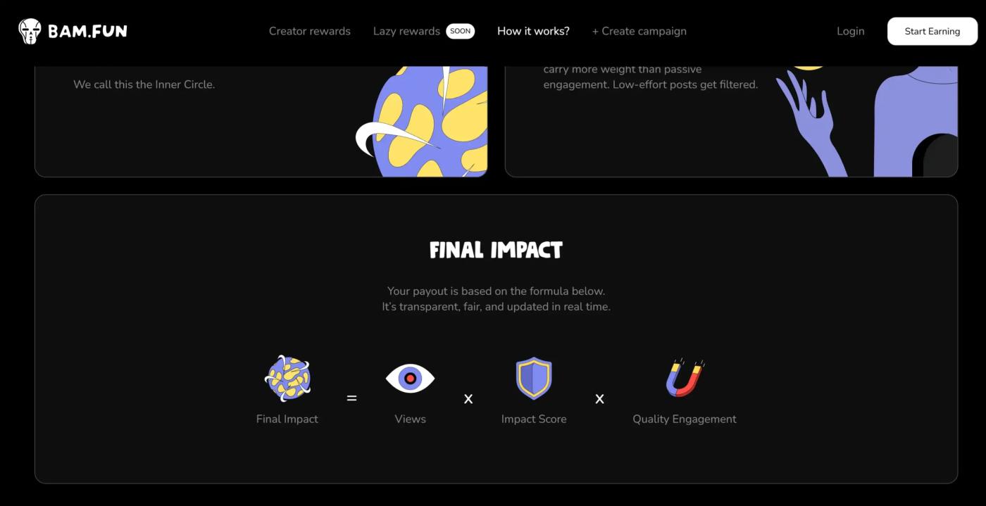 밤.펀은 '최종 영향력' 점수 메커니즘을 사용하여 조회수, 팔로워 품질, 실제 상호작용을 종합적으로 평가하여 콘텐츠 가치를 측정합니다. 신뢰할 수 있는 고신호 사용자의 조회수에 중점을 두고 저품질 또는 조회수 조작 행위를 필터링합니다. 플랫폼은 6시간마다 자동으로 데이터를 업데이트하며, 증명을 제출할 필요 없이 모든 수익과 진행 상황을 '내 캠페인'에서 실시간으로 확인할 수 있습니다.