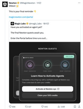 매직뉴턴은 금일 '마지막'이라는 트윗을 남겼습니다.
