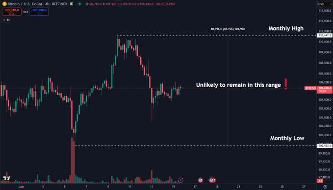 $BTC는 현재 이번 달 가격 범위의 중간 지점 부근에서 거래되고 있습니다. 현재 저점과 고점 사이의 변동폭은 약 10%에 불과합니다. 지난 4년 동안 모든 달에서 이보다 더 큰 월간 변동폭이 나왔었습니다. 즉, 이번 달 안에 고점이나 저점 중 하나가 뚫릴 가능성이 매우 높다는 뜻이니 주시하세요. 그리고 저는 이번 돌파가 더 큰 움직임으로 이어질 가능성이 높다고 생각합니다. 단순히 스윕만 하고 반대로 가지는 않을 것 같아요. 이번 돌파에서 모멘텀이 형성되는 쪽에 베팅합니다.