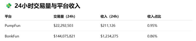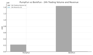 💰 BonkFun의 거래량은 PumpFun의 6.5배, 수익도 5.8배 높습니다.
