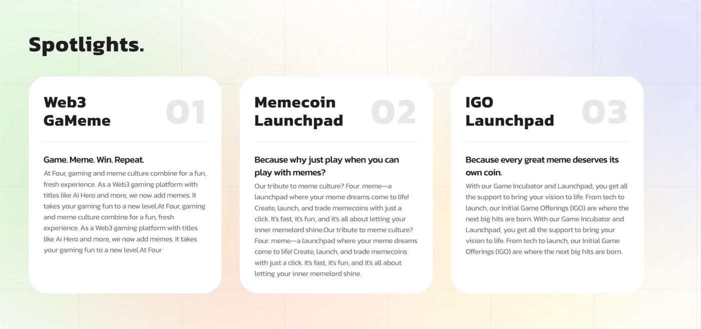 포(Four)는 바이너리엑스(BinaryX)에서 진화하여 게임을 넘어 디파이와 밈(meme) 토큰 인프라를 생태계에 도입했습니다.